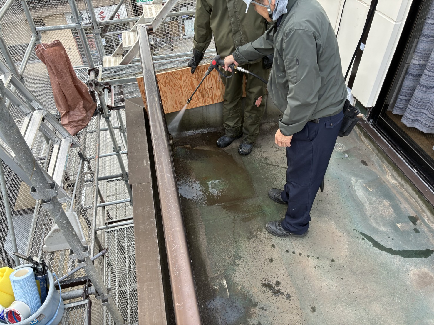 ベランダ防水工事前の洗浄|富山市