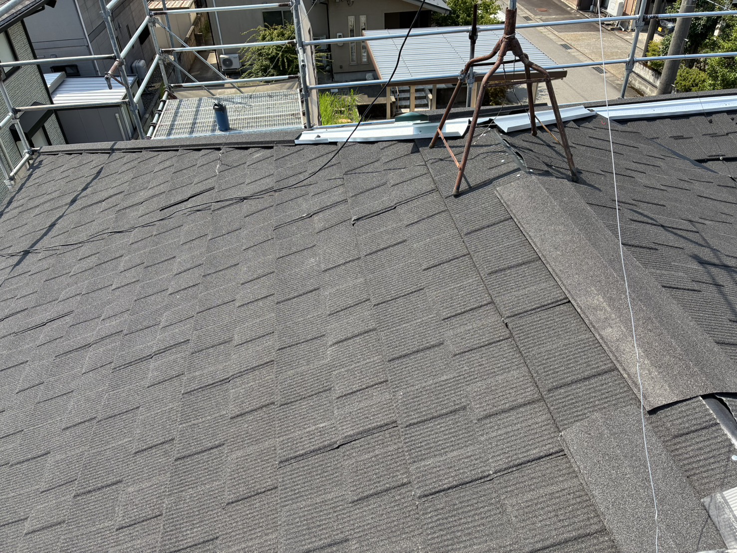 - 屋根や外壁の傷みが気になり始め、そろそろ塗り替えの時期だと感じていたそうです。特に屋根のコケや色あせが目立ってきていたことから、ホームページを見て弊社にご相談をいただきました。数社で見積もりを比較された結果、「提案内容と予算が希望にぴったりだった」とのことで、小川塗装にご依頼くださいました。